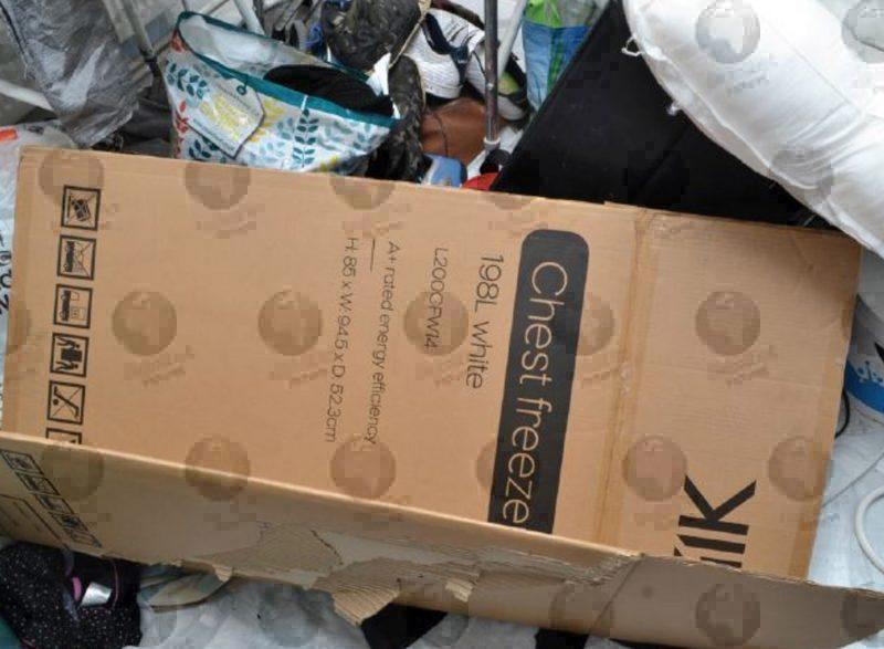 Packaging which the chest freezer came in which was used to hide two bodies in the freezer in the flat of Zahid Younis