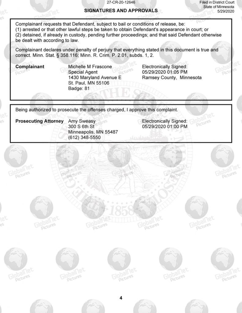 A seven page document outlines in damning detail the criminal charges filed against police officer Derek Chauvin, who is accused of third-degree murder and the manslaughter of George Floyd, 46, a black man who died on Monday in Minneapolis in custody.