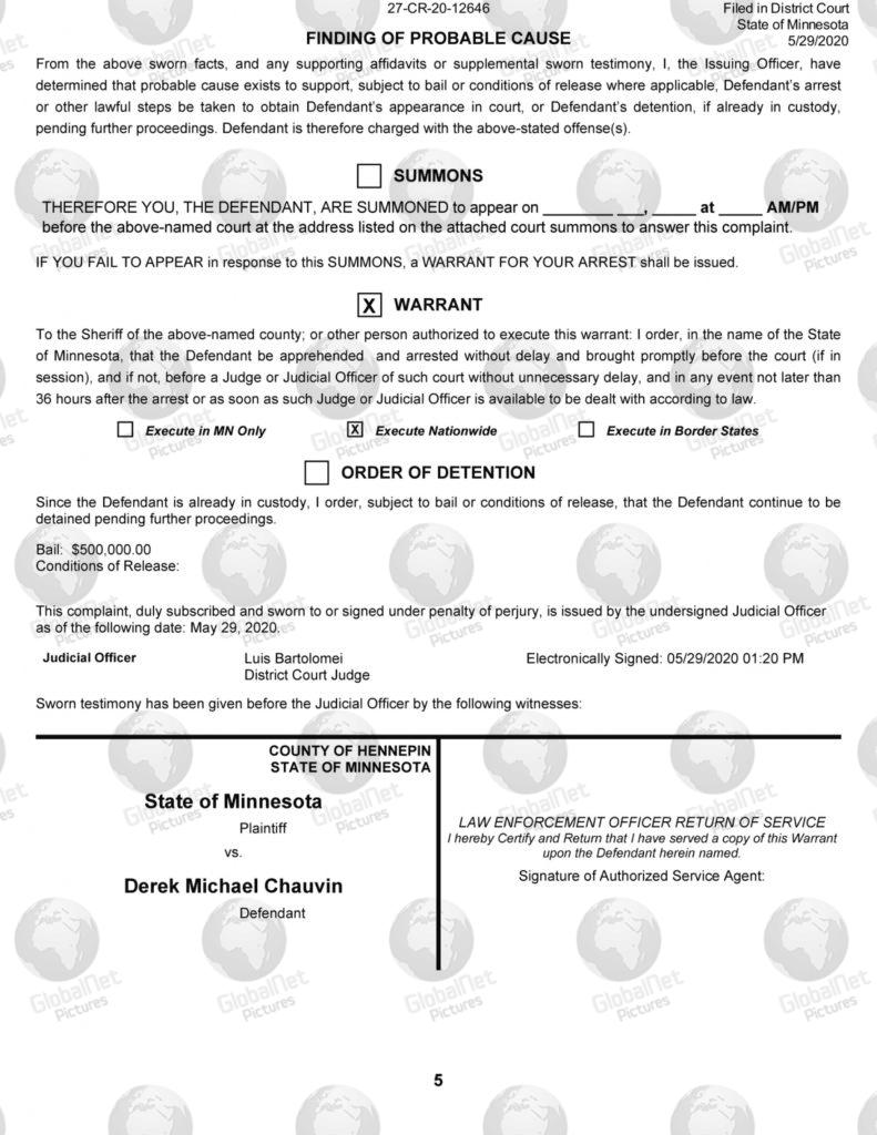 He is also charged with manslaughter in the second degree – ‘Culpable Negligence Creating Unreasonable Risk’ – also felony charge with a maximum sentence of 10 years. The murder charge description reads: “That on or about May 25, 202, in Hennepin County, Minnesota, Derek Michael Chauvin caused the death of George Floyd by perpetrating an act eminently dangerous to others and evincing a depraved mind, without regard for human life.” The manslaughter charge reads: “Derek Micheal Chauvin caused the death of George Floyd by his culpable negligence, creating an unreasonable risk and taking a chance of causing death or great bodily harm to George Floyd.”
